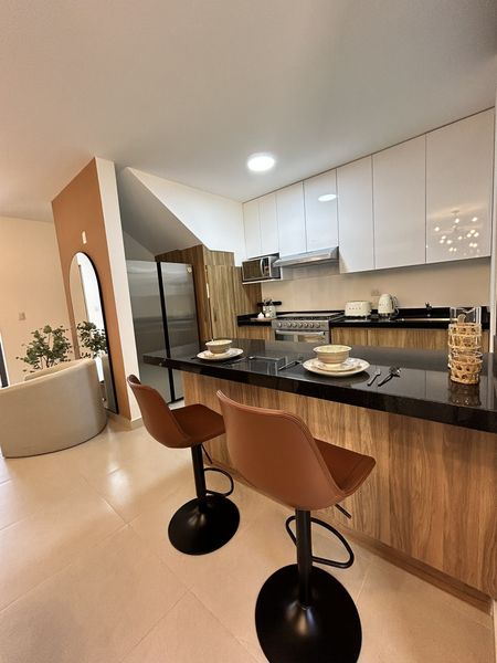 Cocina equipada con barra de granito
