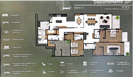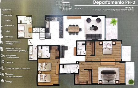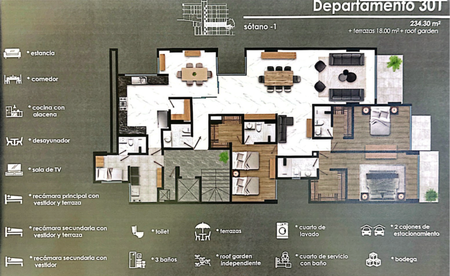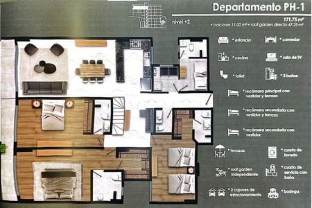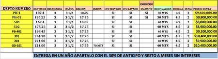 DEPTO NUMERO DEPTO M2 RECAMARAS BAÑOS BALCON JARDIN CTO SERVICIO CTO LAVADO SALON TV ROOF GARDEN BODEGA ESTAC PRECIO VENTA