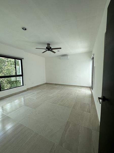 La planta alta tiene distribuidas tres recamaras, la principal de buenas dimensiones, closet vestidor con vista al jardín y baño con doble lavabo, dos secundarias con aire acondicionado, closet vestidor una sala de TV también con aire acondicionado.